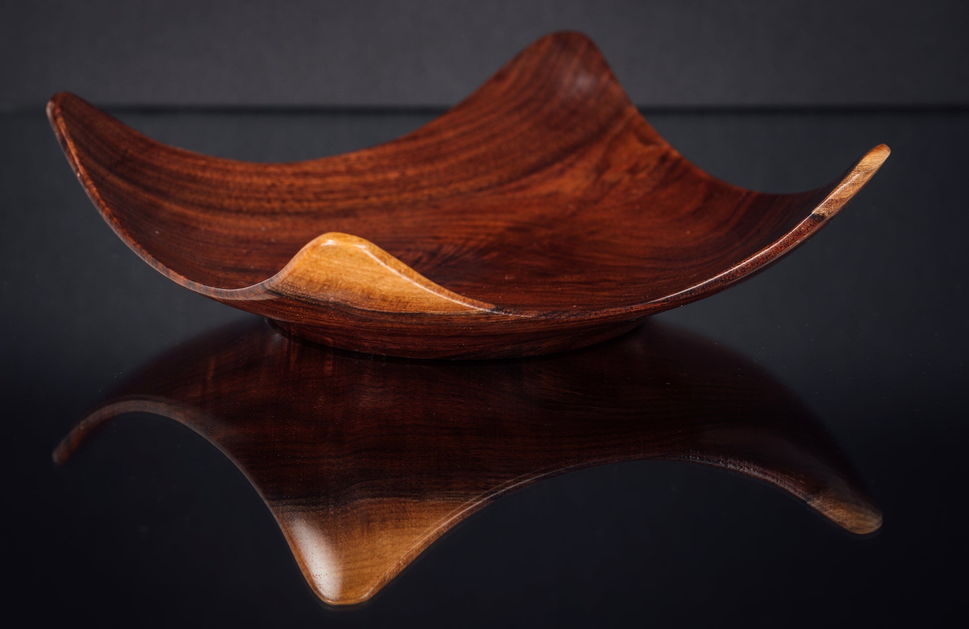 This striking square walnut bowl is a perfect fusion of refined craftsmanship and natural elegance. Hand-shaped from a single piece of premium walnut, each corner of this sculptural form rises with gentle curves that show off the wood’s rich grain and deep, warm tones. No two are ever alike.