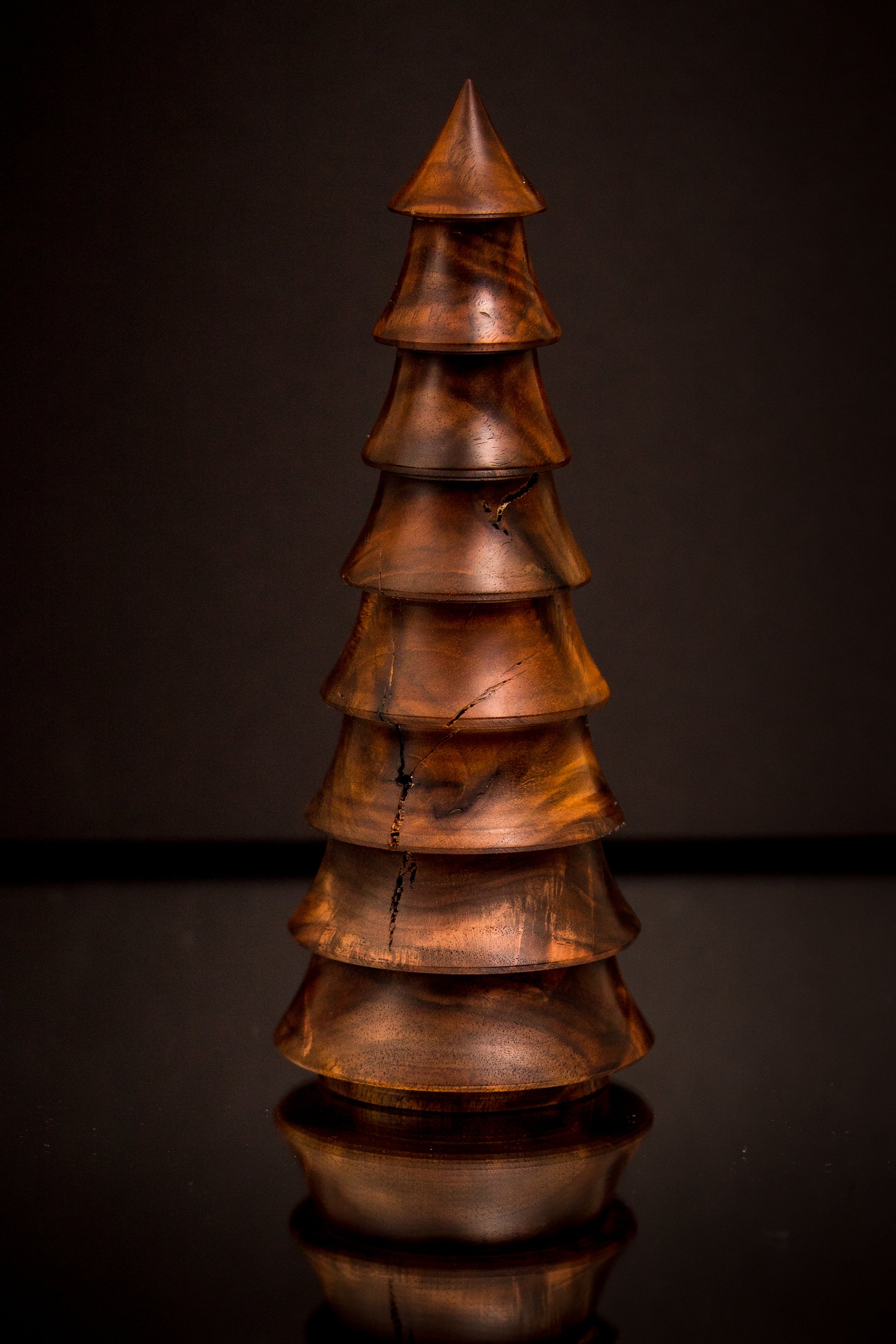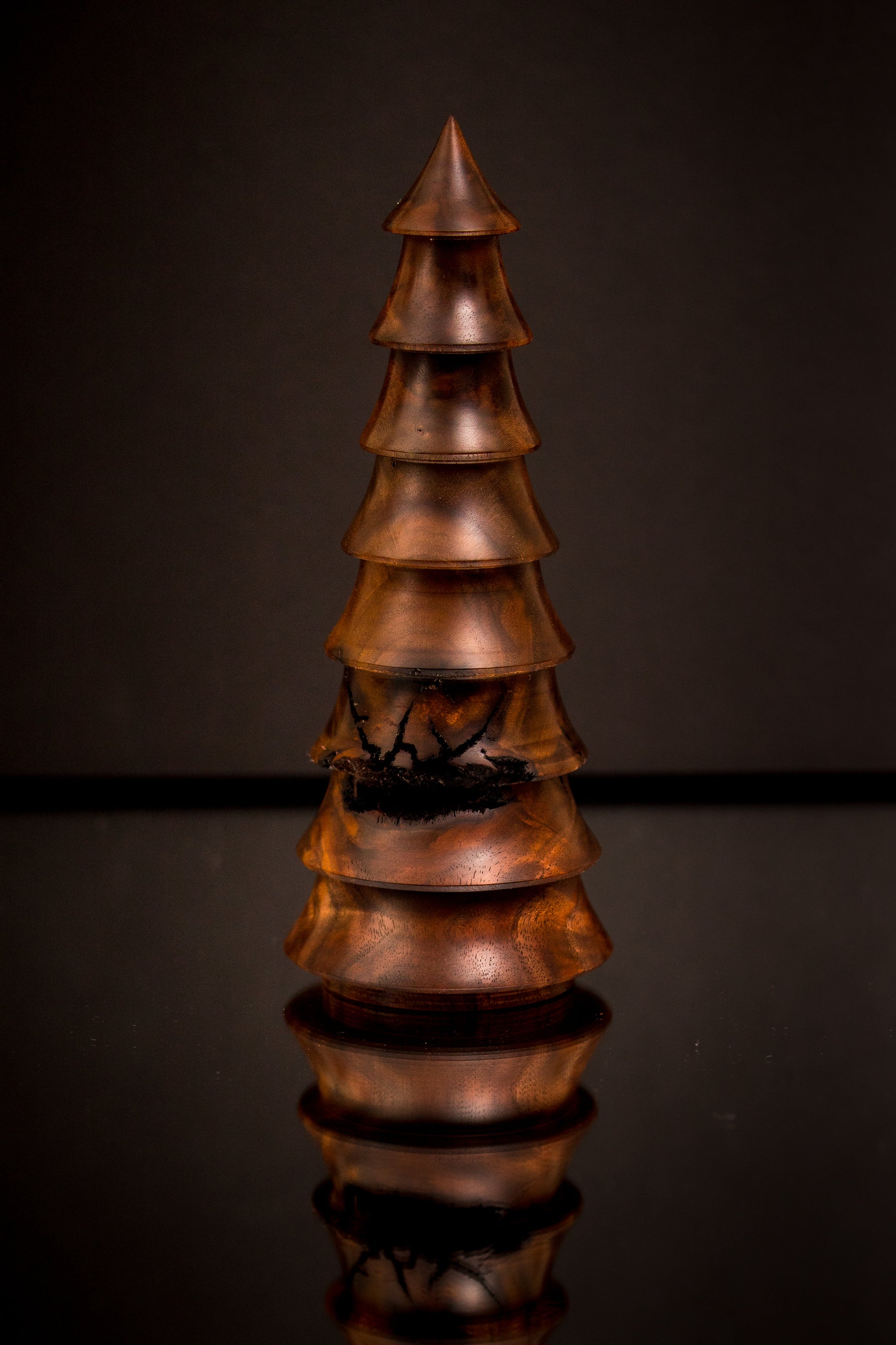 Bring warmth and rustic elegance to your home with this handcrafted walnut tree. Expertly turned on a lathe, this piece showcases the rich, natural grain of walnut, enhanced by its smooth, polished finish and gracefully tiered silhouette.